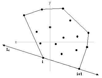 Make line L i passing through points i and i+1 (a supporting line of S )