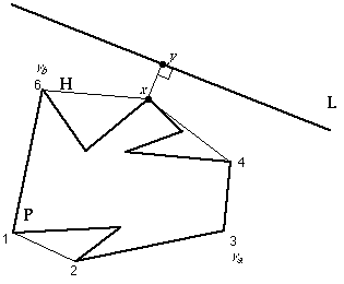 min|x-y|:x OE P, y OE P is a line [x,y] from a vertex of P perpendicular to L .